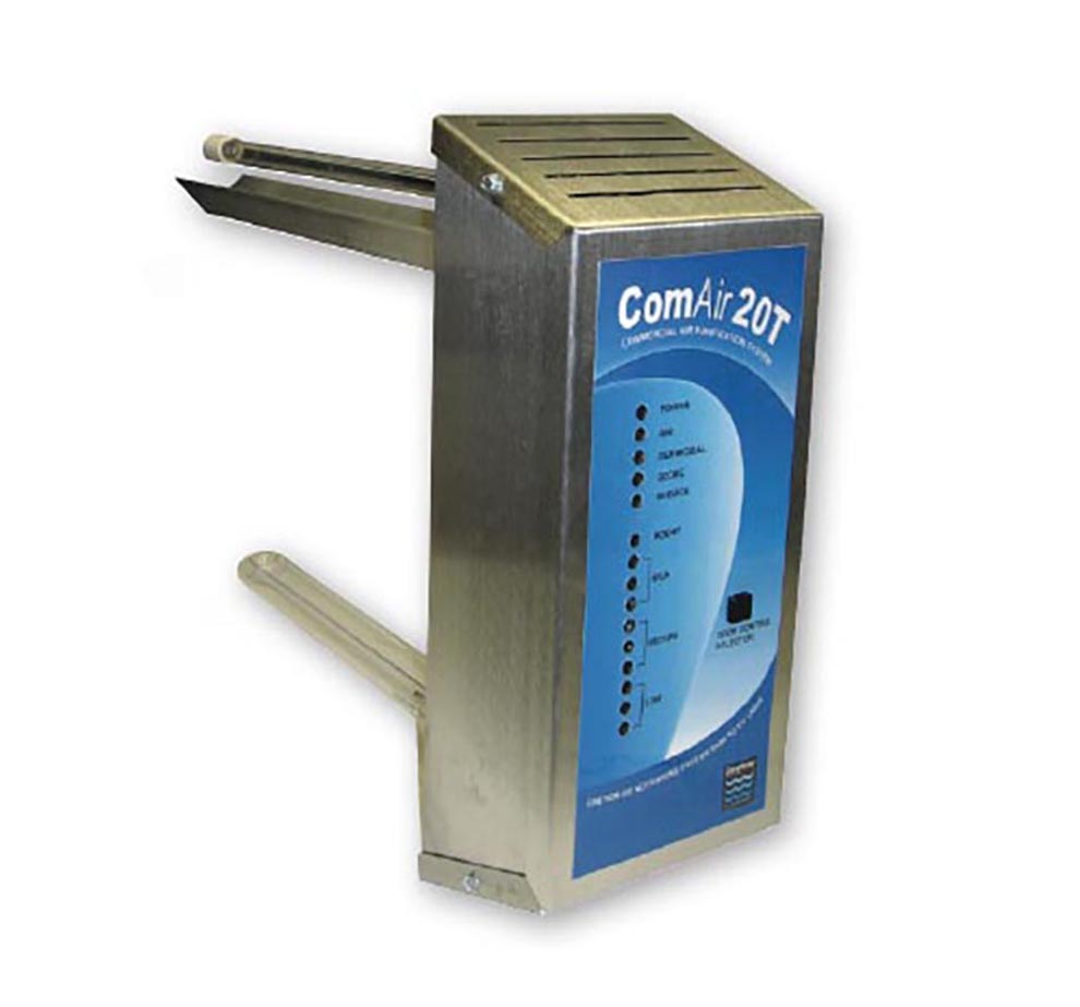 ComAir HVAC ozone unitThe most advanced commercial grade HVAC sterilization system available on the market. With the germicidal killing power of 300 microwatts and 0-100% variable ozone output, this system effectively eliminates bacteria and viruses along with various odors.
